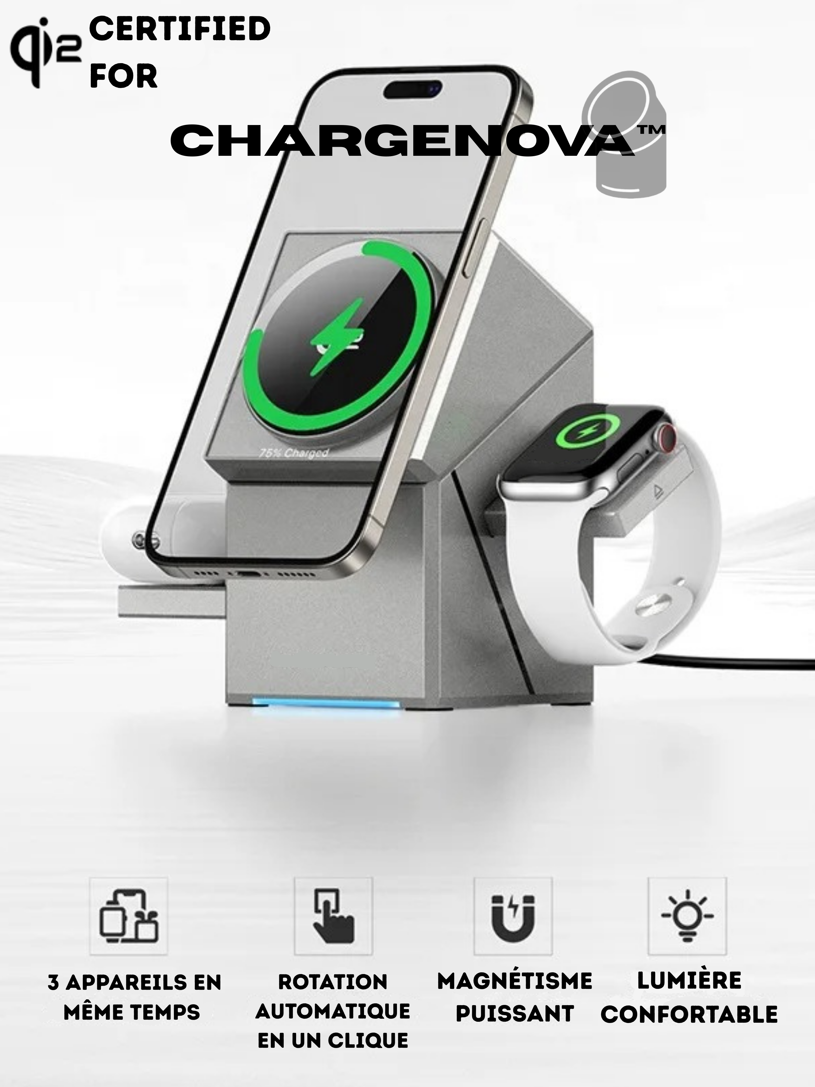 ChargeNova™ - chargeur sans fil 3-en-1 CubiOne